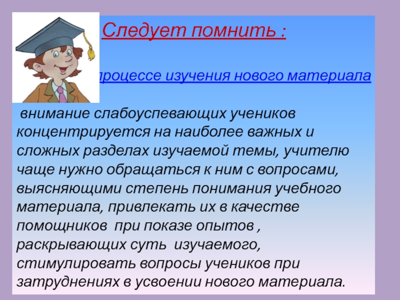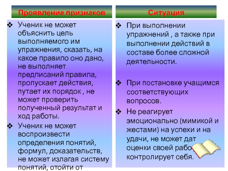 При решении задач, при восприятии объяснения учителя , в ситуации выбора по желанию задания для самостоятельной работы.