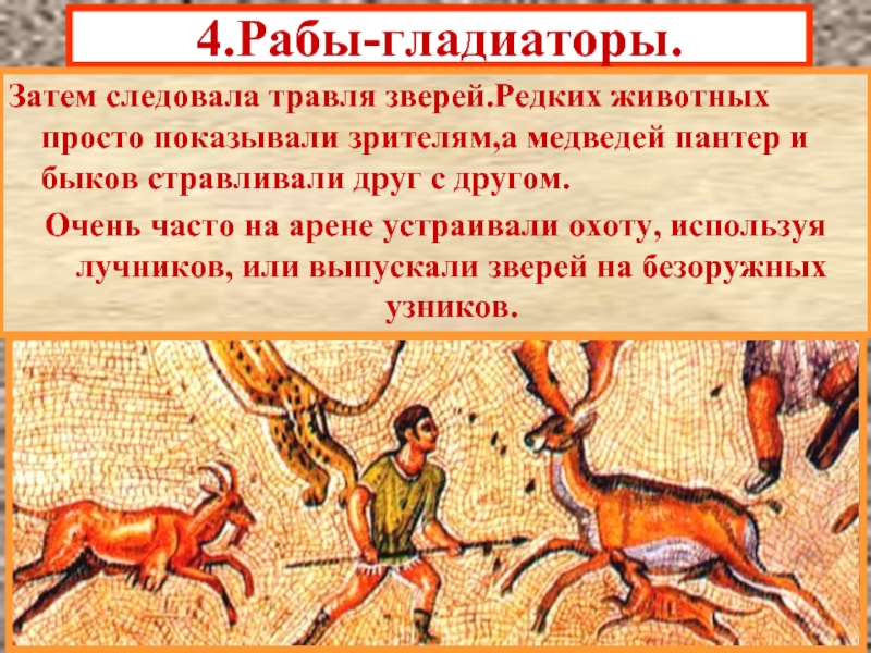 А песок на арене окрашивали в красно-коричневый цвет,чтобы на нем не слиш-ком выделялась кровь.