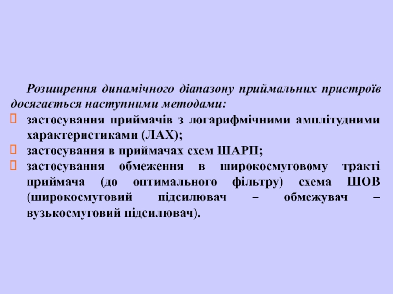 Методи забезпечення широкого динамічного діапазону приймального тракту