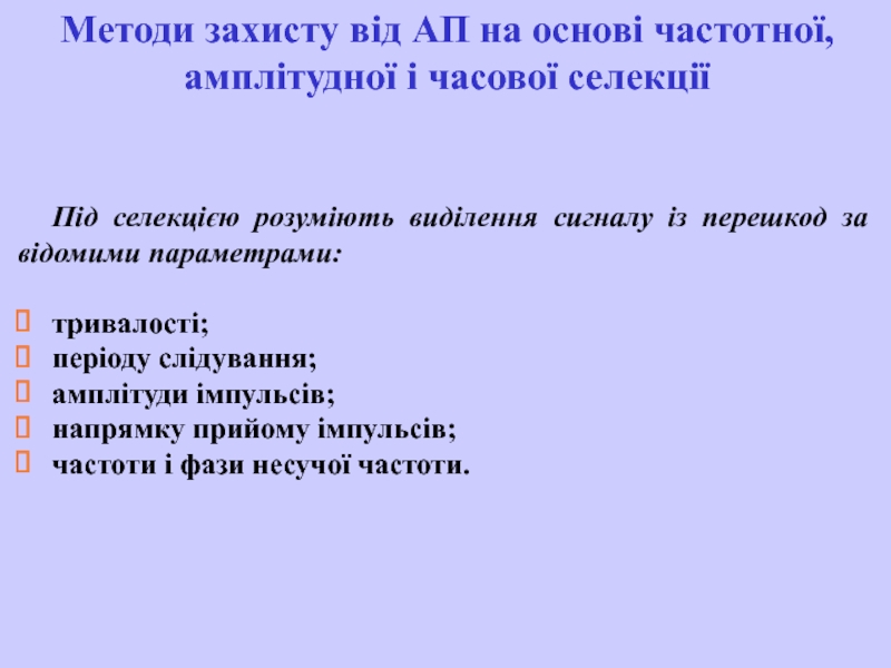 Методи захисту від АП на основі частотної, амплітудної і часової селекції