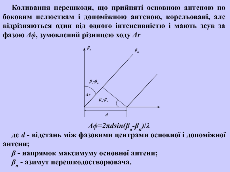 де d - відстань між фазовими центрами основної і допоміжної антени;