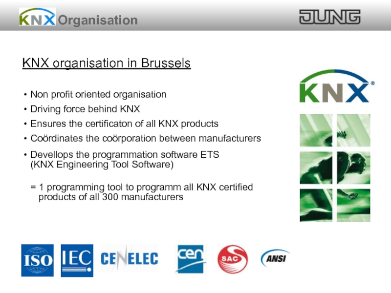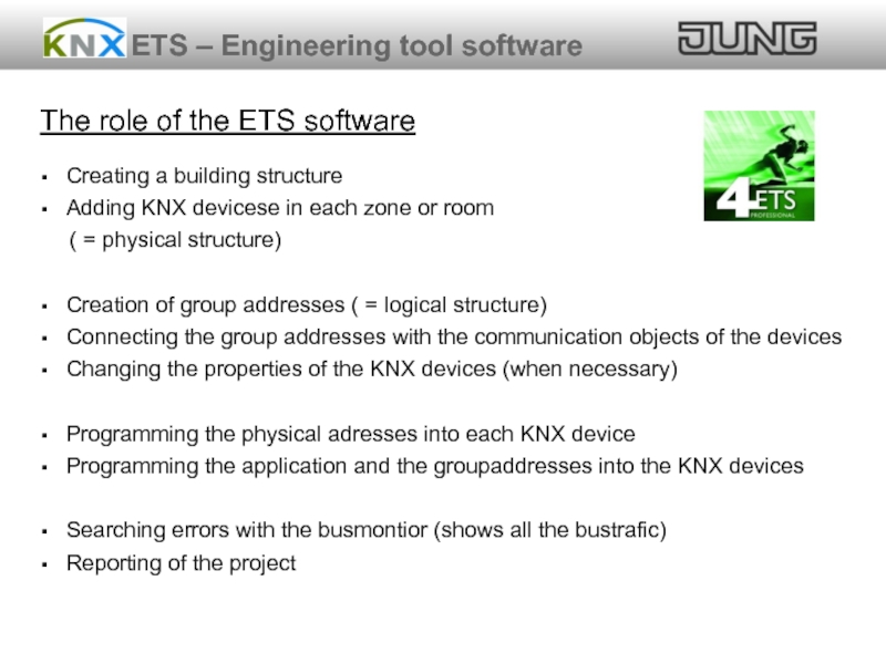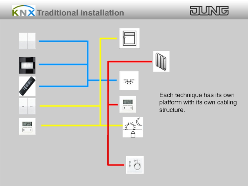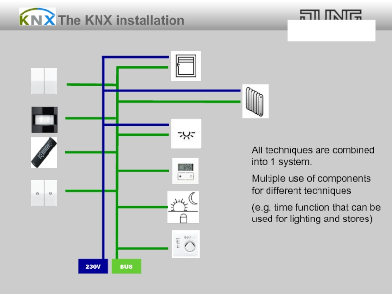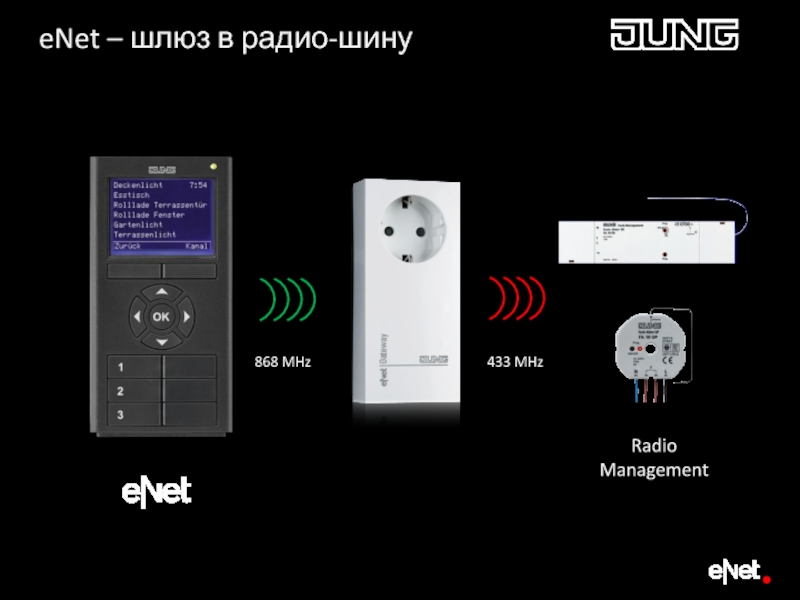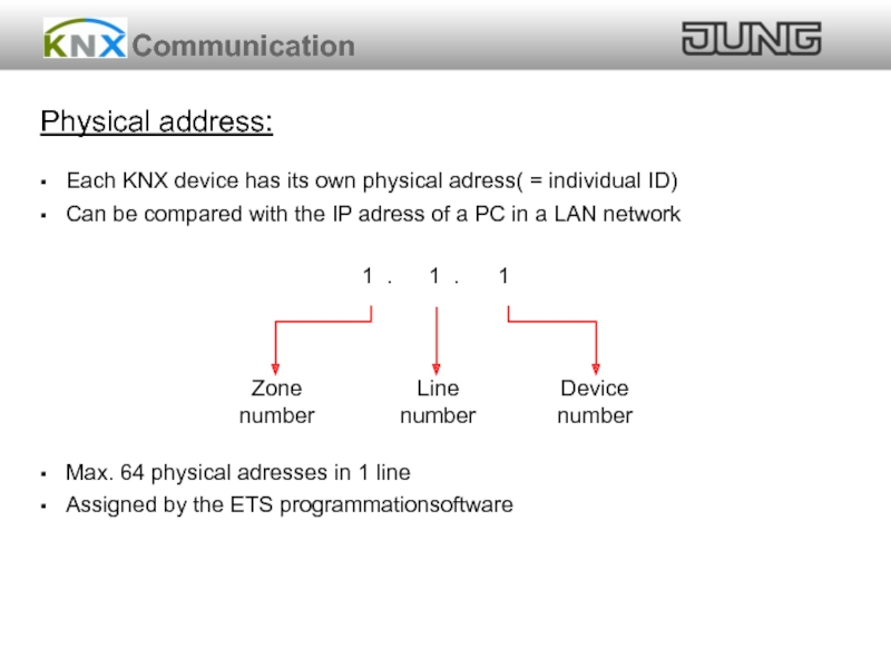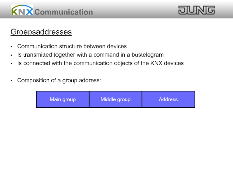The receivers will react after receiving the telegram (switching, dimming, changing a value,…)