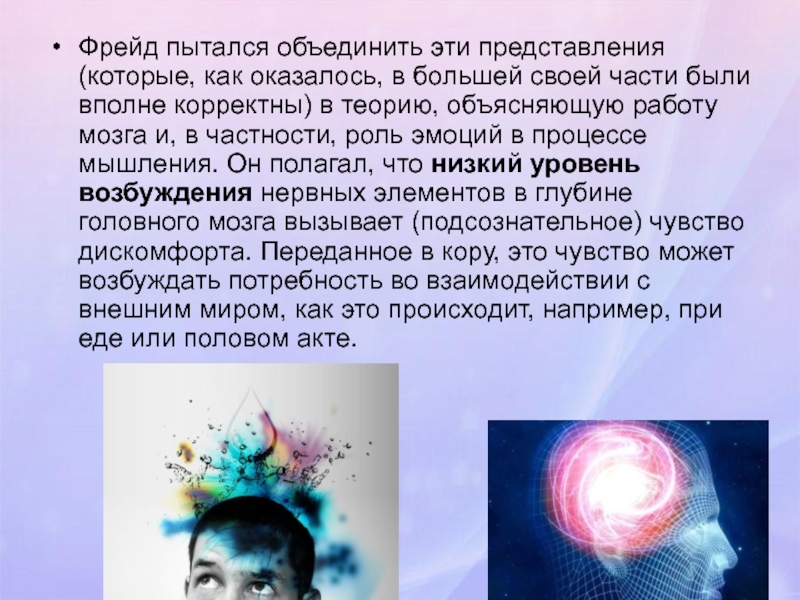 Слайд 5Фрейд пытался объединить эти представления (которые, как оказалось, в большей своей