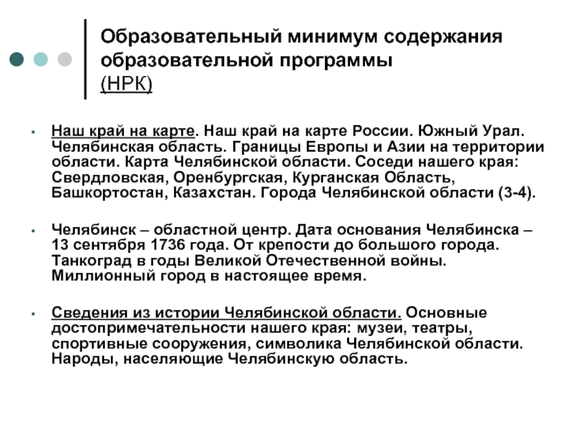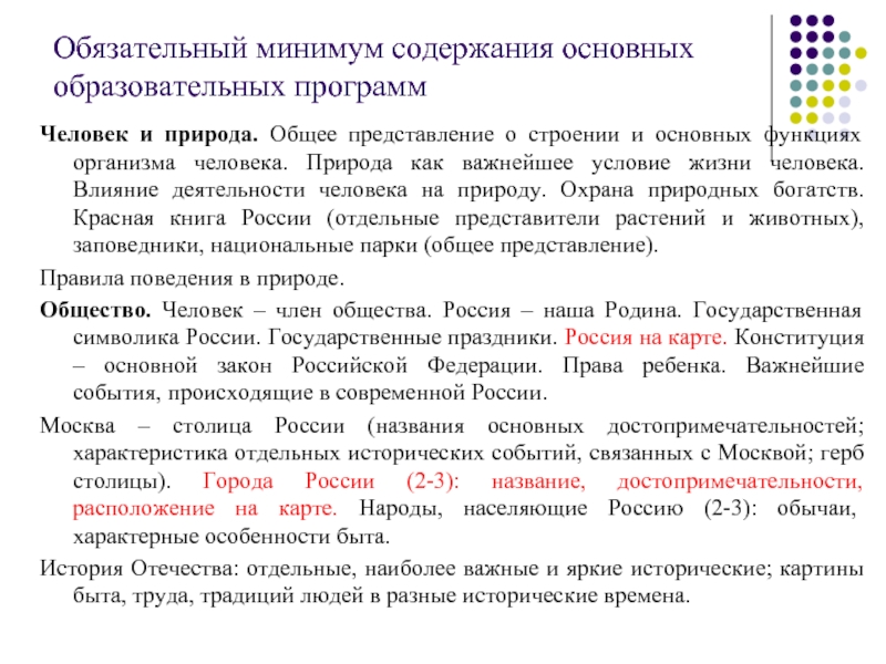 Слайд 69Обязательный минимум содержания основных образовательных программ