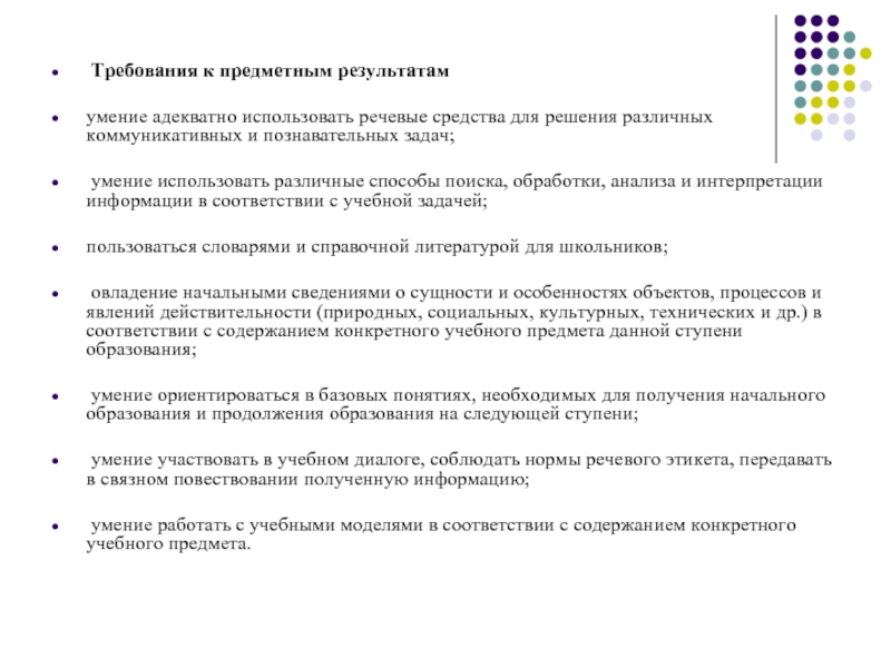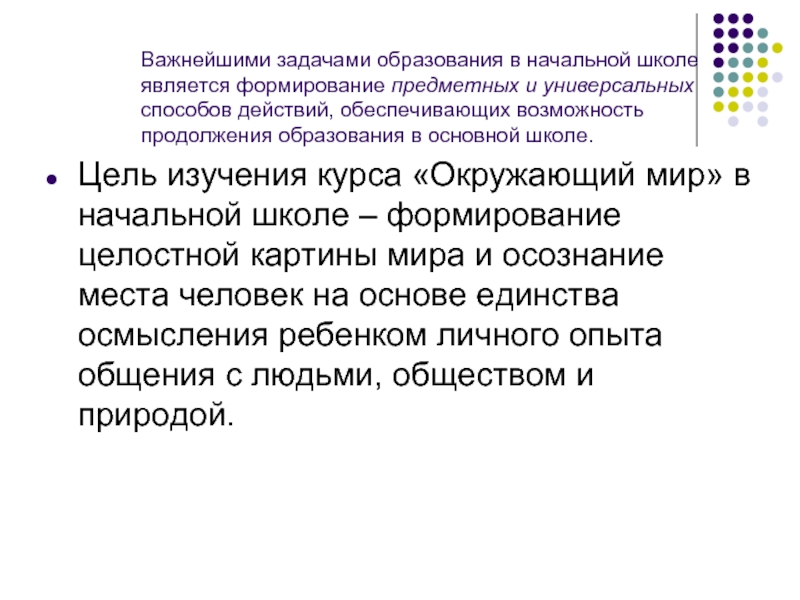 овладение начальными сведениями о сущности и особенностях объектов, процессов и явлений действительности (природных, социальных, культурных, технических и др.) в соответствии с содержанием конкретного учебного предмета данной ступени образования;