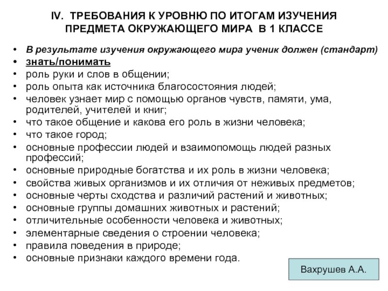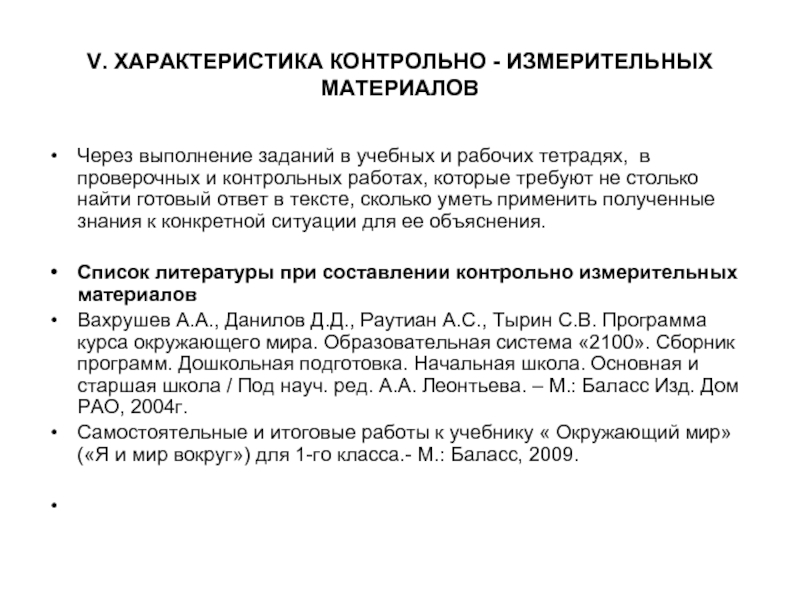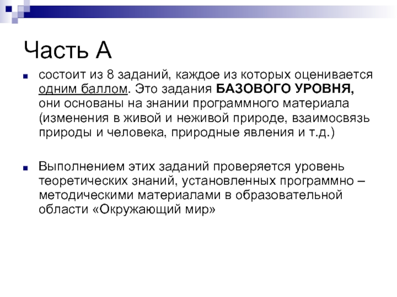 Выполнением этих заданий проверяется уровень теоретических знаний, установленных программно – методическими материалами в образовательной области «Окружающий мир»