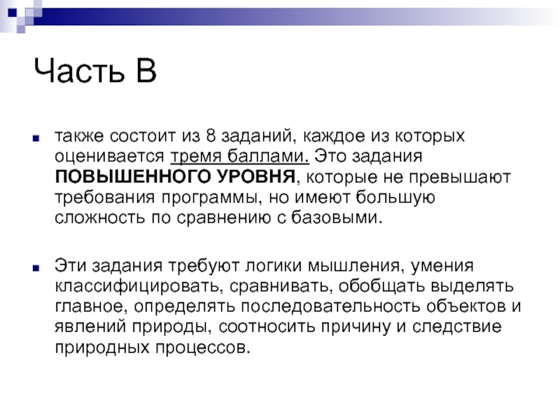 Эти задания требуют логики мышления, умения классифицировать, сравнивать, обобщать выделять главное, определять последовательность объектов и явлений природы, соотносить причину и следствие природных процессов.
