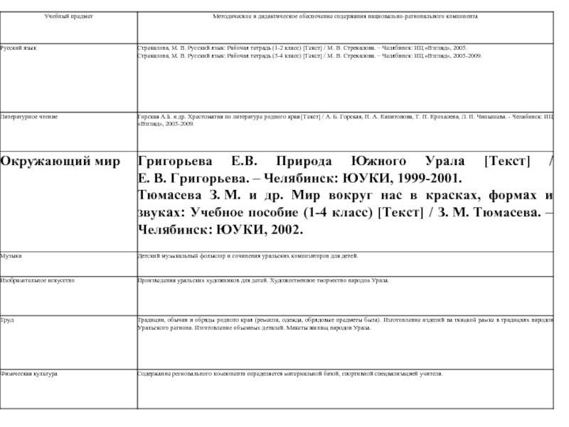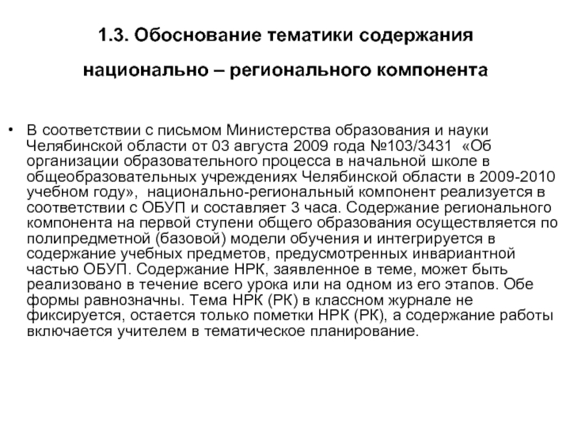 Национально – региональный компонент стандарта начального общего образования по окружающему миру