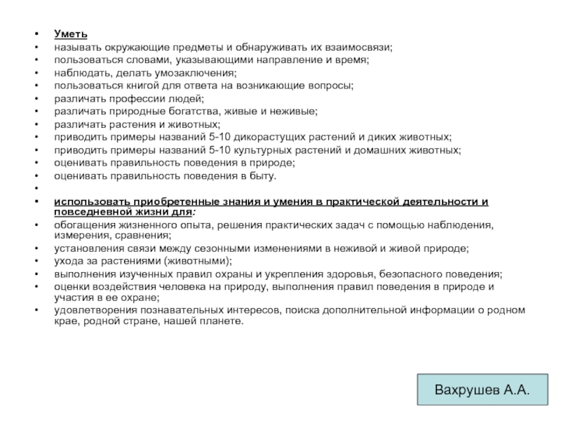 описывать на основе предложенного плана изученные объекты и явления живой и неживой природы, выделять их основные существенные признаки;