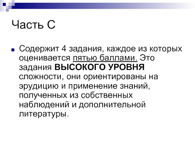 Содержит 4 задания, каждое из которых оценивается пятью баллами. Это