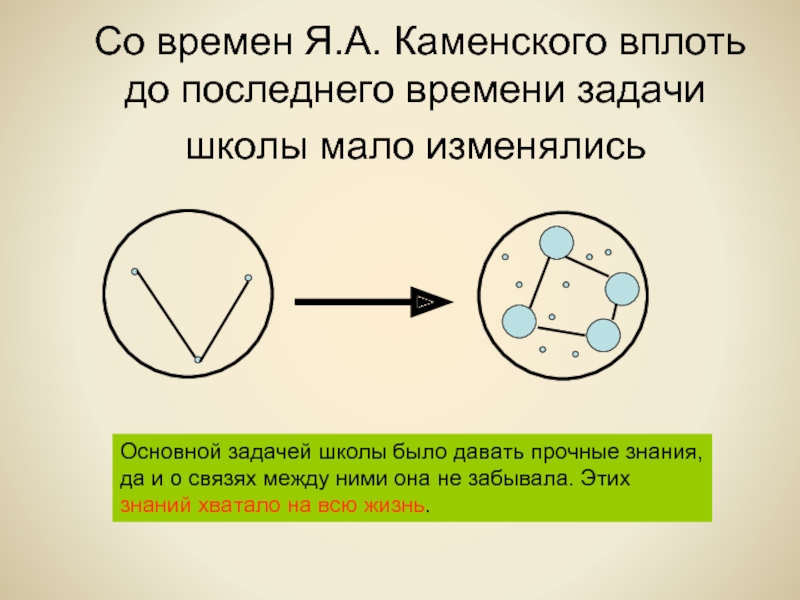 Слайд 3 Со времен Я.А. Каменского вплоть до последнего времени задачи школы