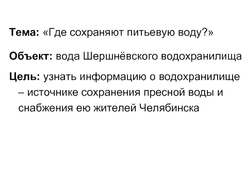 Слайд 25Тема: «Где сохраняют питьевую воду?»
