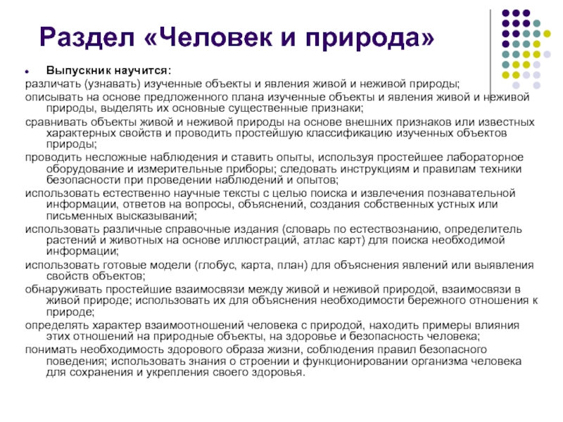 строении и основных функциях организма человека. Природа как важнейшее условие жизни человека. Влияние деятельности человека на природу. Охрана природных богатств. Красная книга России (отдельные представители растений и животных), заповедники, национальные парки (общее представление).