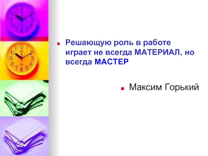 Решающую роль в работе играет не всегда МАТЕРИАЛ, но всегда МАСТЕР