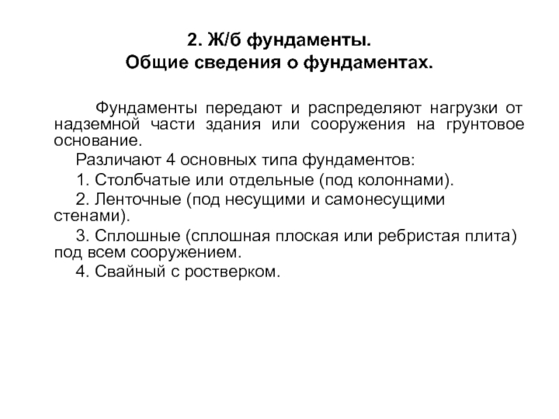 Сборные фундаменты изготовляют из бетонов классов В12,5 …В20,
