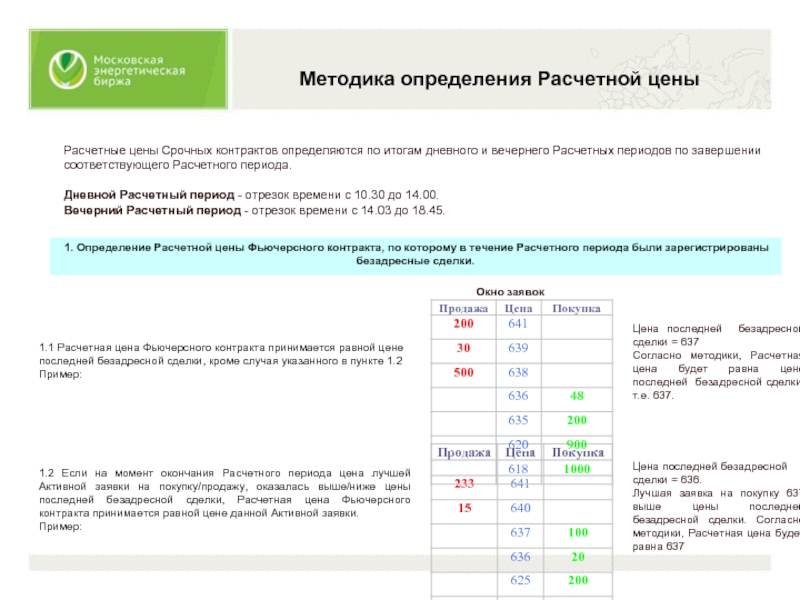 1. Определение Расчетной цены Фьючерсного контракта, по которому в течение Расчетного периода были зарегистрированы безадресные сделки.