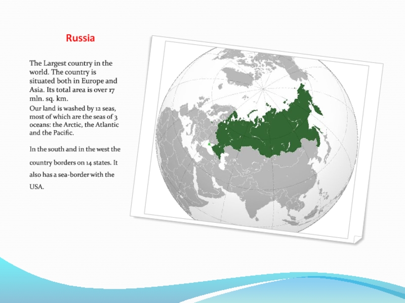 in Europe and Asia. Its total area is over 17 mln. sq. km.