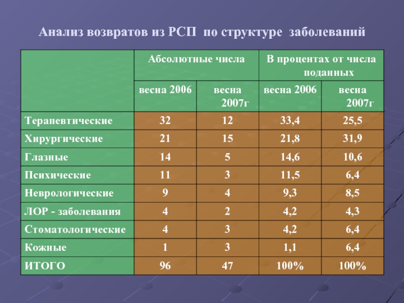 Слайд 6Анализ возвратов из РСП по структуре заболеваний