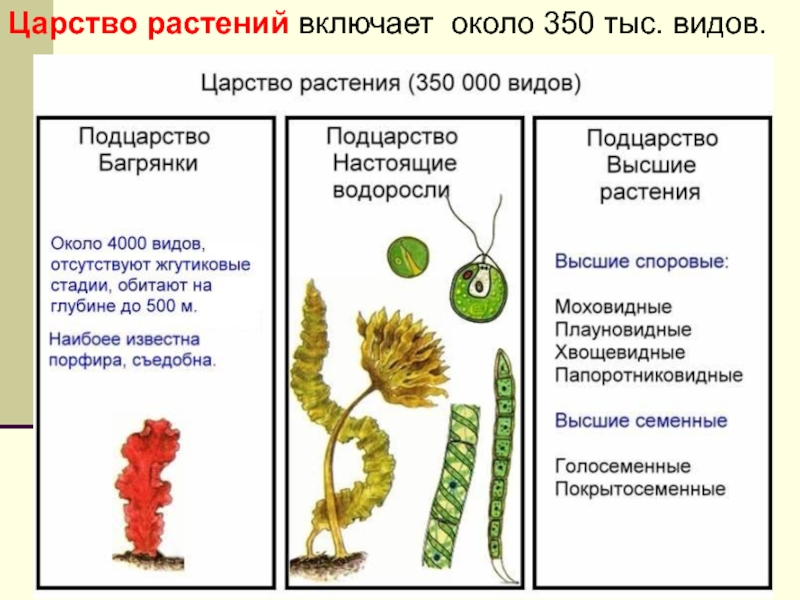 Слайд 4Царство растений включает около 350 тыс. видов.