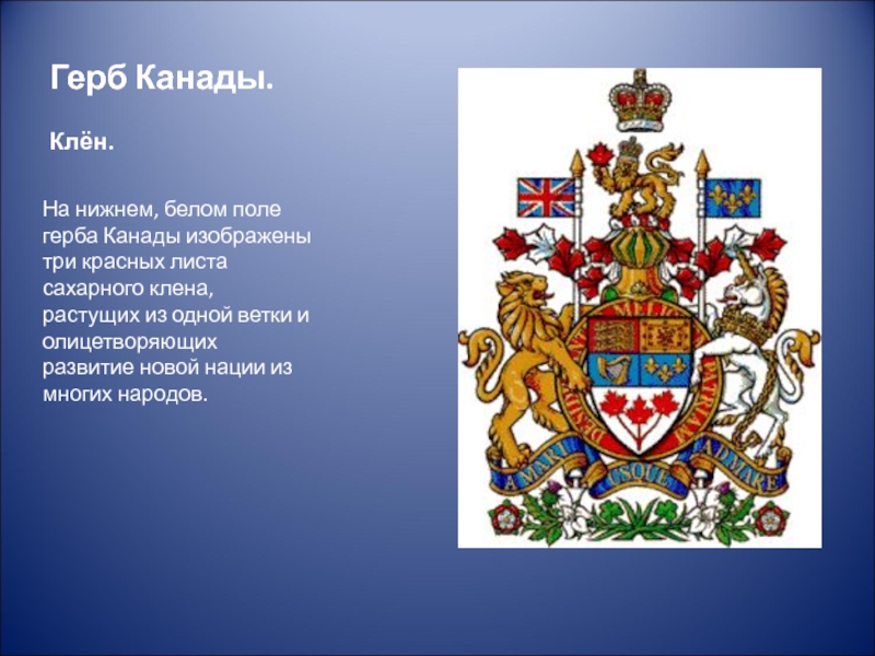 сахарного клена, растущих из одной ветки и олицетворяющих развитие новой нации из многих народов.