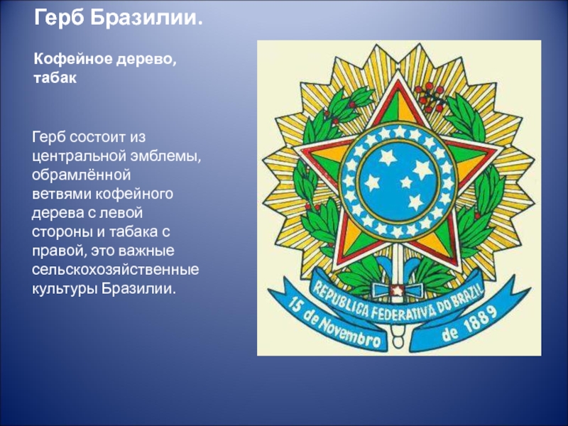 с левой стороны и табака с правой, это важные сельскохозяйственные культуры Бразилии.