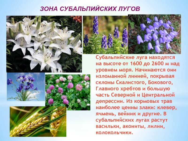 зоны субальпийских и альпийских лугов