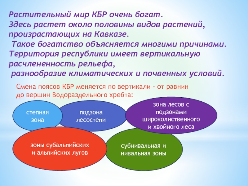 Смена поясов КБР меняется по вертикали - от равнин
