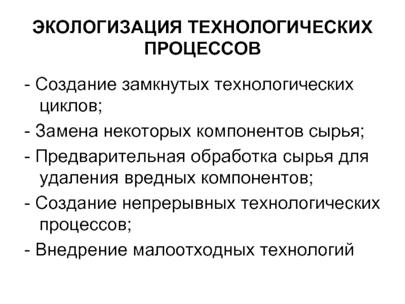 Слайд 10ЭКОЛОГИЗАЦИЯ ТЕХНОЛОГИЧЕСКИХ ПРОЦЕССОВ
