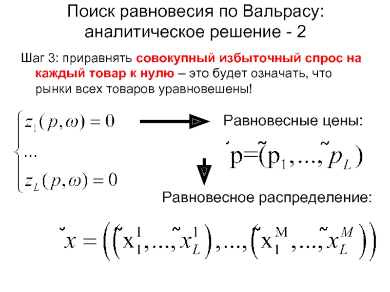 Шаг 2: Просуммировать их по потребителям и получить функции совокупного избыточного спроса на каждое благо
