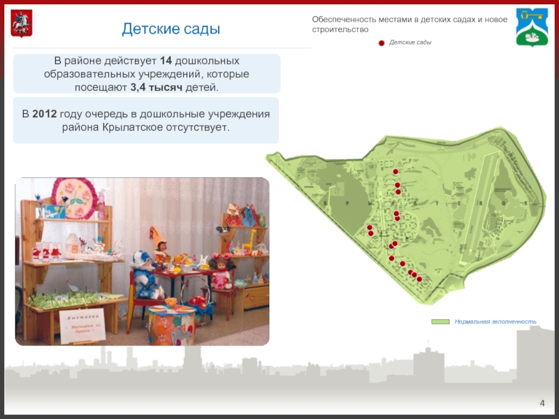 В 2012 году очередь в дошкольные учреждения района Крылатское отсутствует.