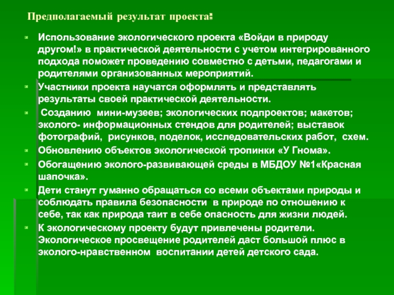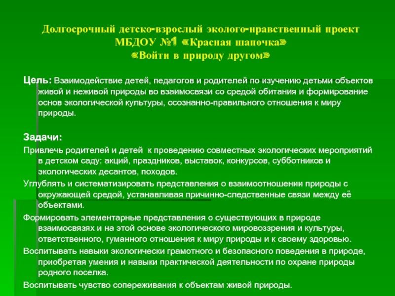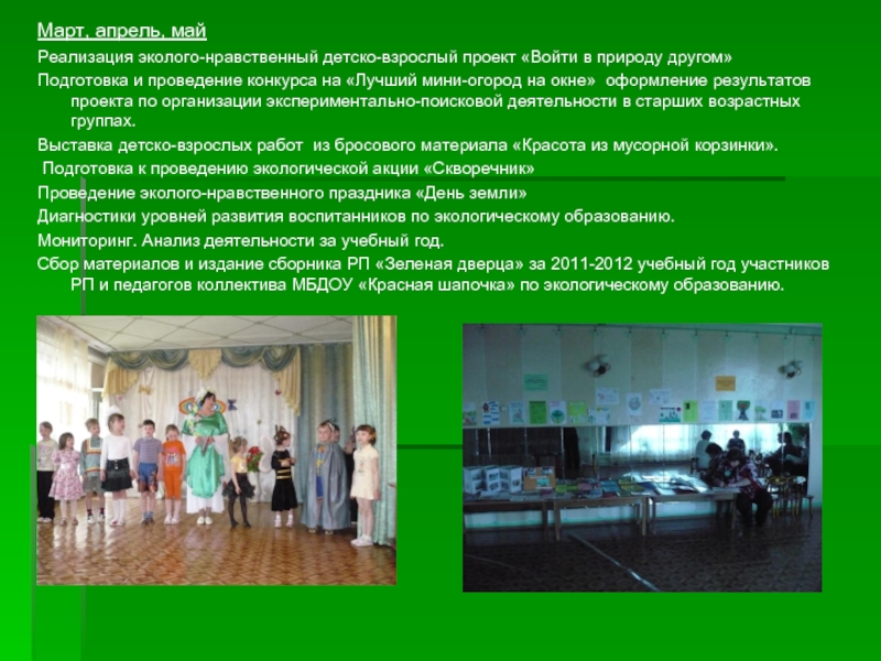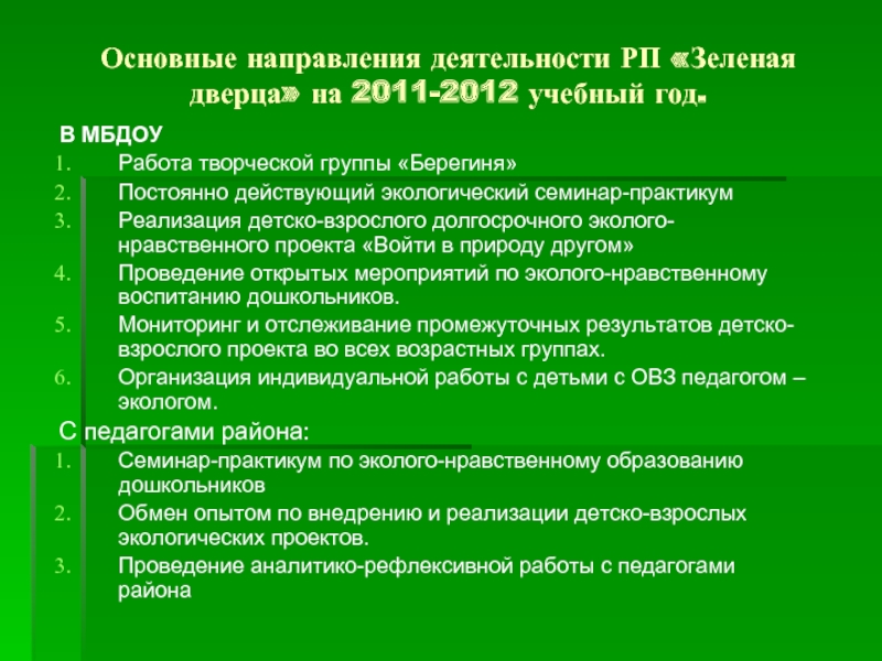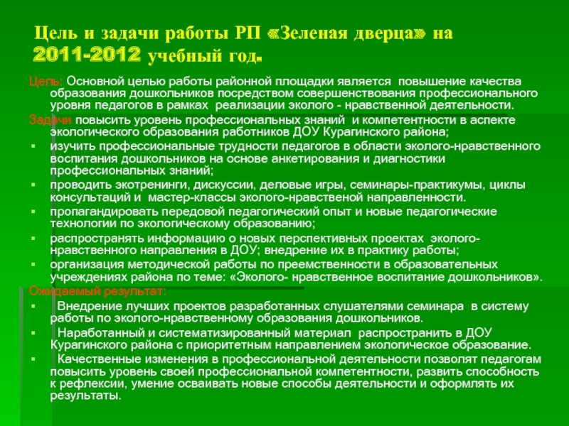 Разработка заявки, планов работы РП «Зеленая дверца» на 2011-2012 год.