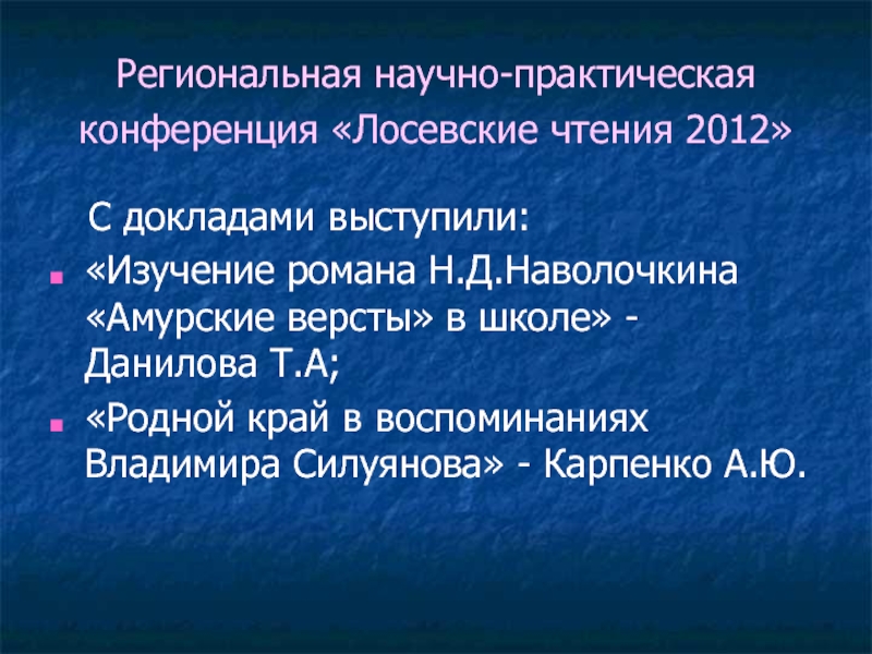 Слайд 12Региональная научно-практическая конференция «Лосевские чтения 2012»
