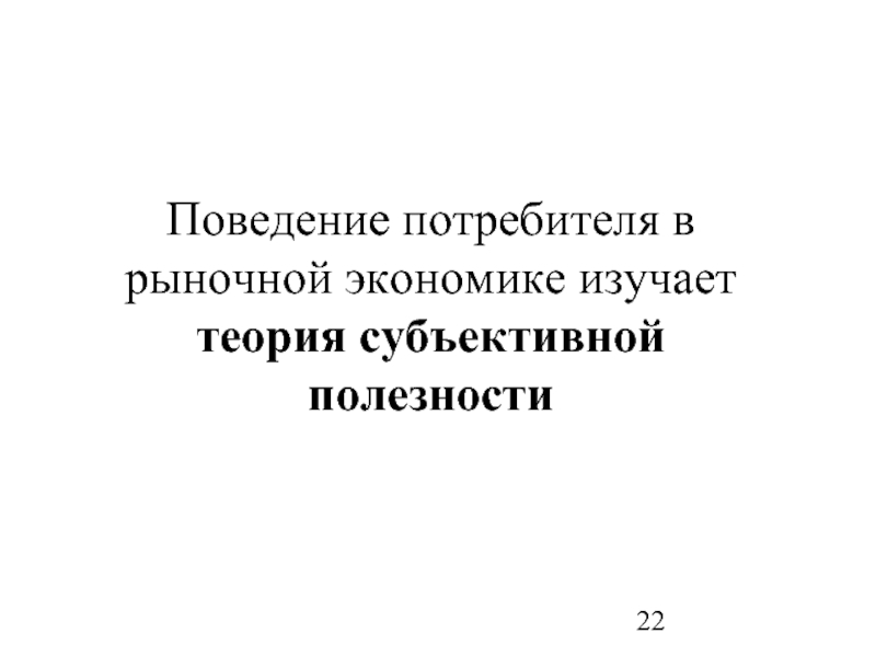 Слайд 22Поведение потребителя в рыночной экономике изучает теория субъективной полезности