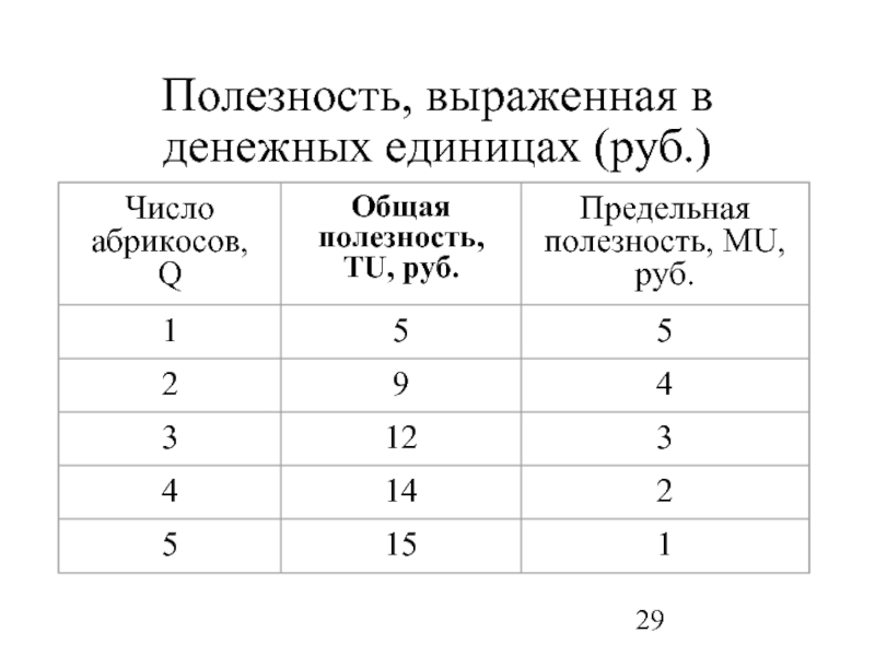 Слайд 29Полезность, выраженная в денежных единицах (руб.)