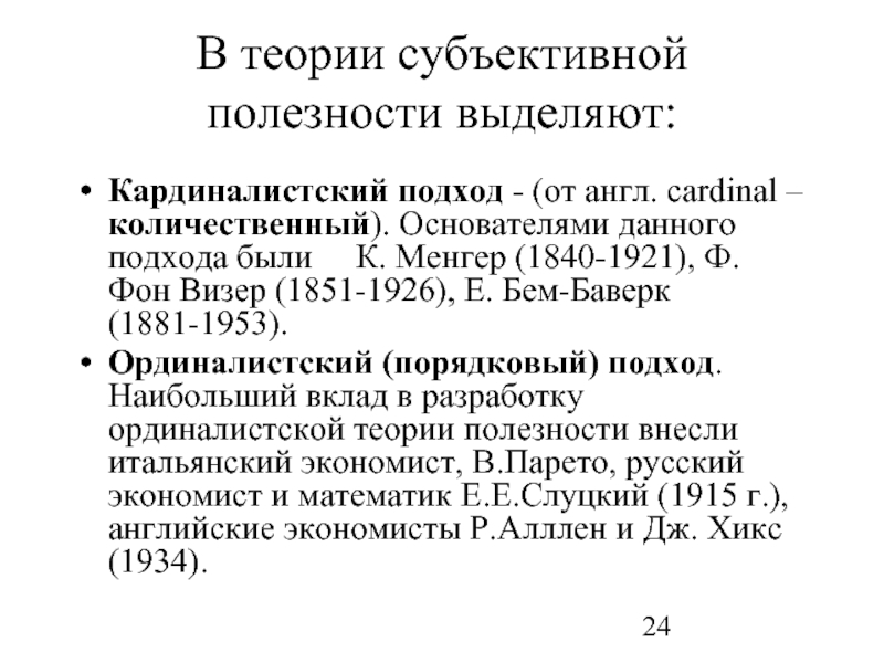 Слайд 24В теории субъективной полезности выделяют: