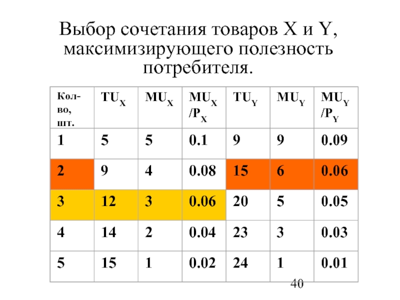 Слайд 37Правило максимизации полезности заключается в таком распределении денежного дохода потребителя, при