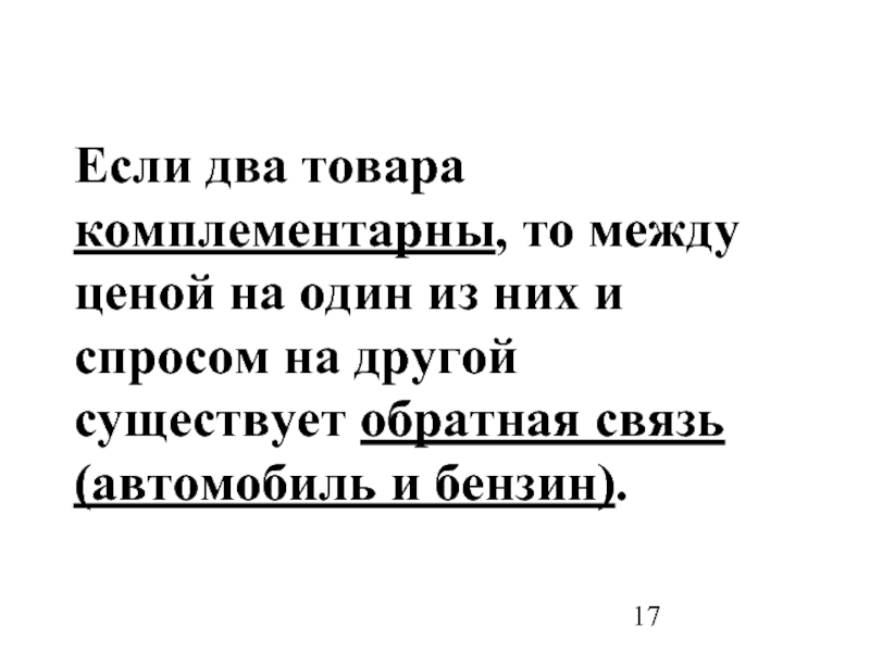 Слайд 17Если два товара комплементарны, то между ценой на один из них