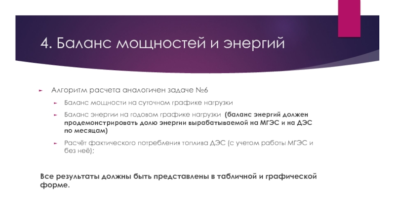 Баланс энергии на годовом графике нагрузки (баланс энергий должен продемонстрировать долю энергии вырабатываемой на МГЭС и на ДЭС по месяцам)