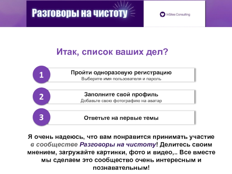 Я очень надеюсь, что вам понравится принимать участие в сообществе Разговоры на чистоту! Делитесь своим мнением, загружайте картинки, фото и видео,.. Все вместе мы сделаем это сообщество очень интересным и познавательным!
