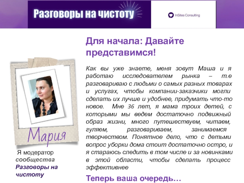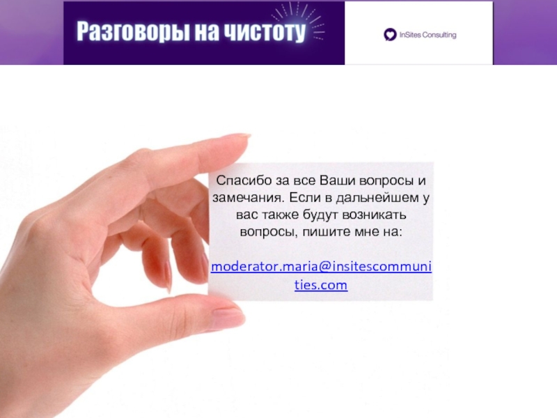 Я модератор сообщества Разговоры на чистоту