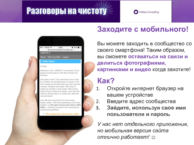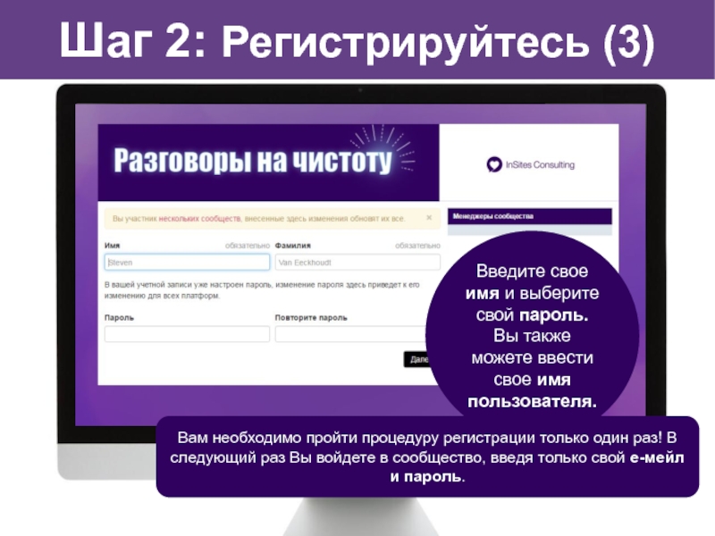 Вам необходимо пройти процедуру регистрации только один раз! В следующий раз Вы войдете в сообщество, введя только свой е-мейл и пароль.