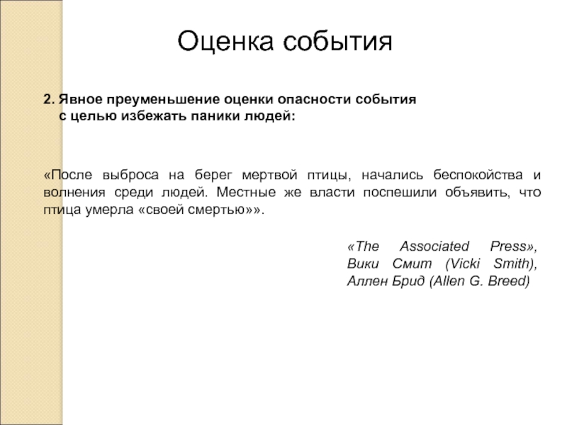 «После выброса на берег мертвой птицы, начались беспокойства и волнения среди людей. Местные же власти поспешили объявить, что птица умерла «своей смертью»».