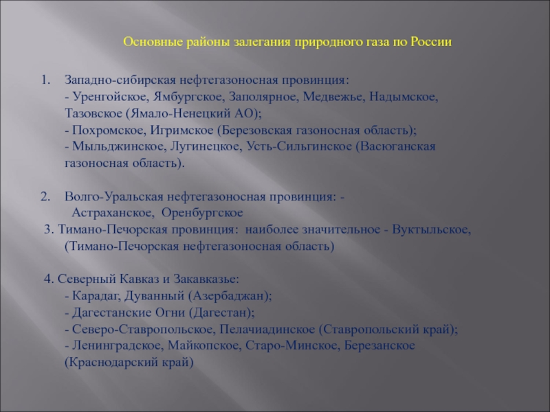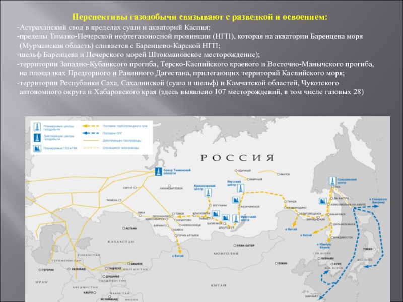 В Ямало-Ненецком автономном округе сосредоточено 34 652,1 млрд м куб запасов газа в пределах Надым-Пур_Тазовской, Ямальской и Гыданской нефтегазоносны областей и на шельфе Карского моря (Ленинрадское и Русановское месторождение).