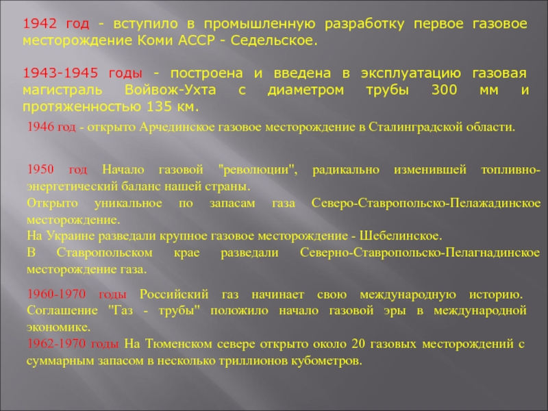 1950 год Начало газовой "революции", радикально изменившей топливно-энергетический баланс нашей страны.