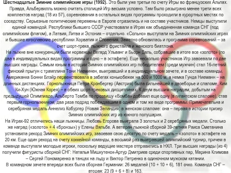 Слайд 20Шестнадцатые Зимние олимпийские игры (1992). Это были уже третьи по счету