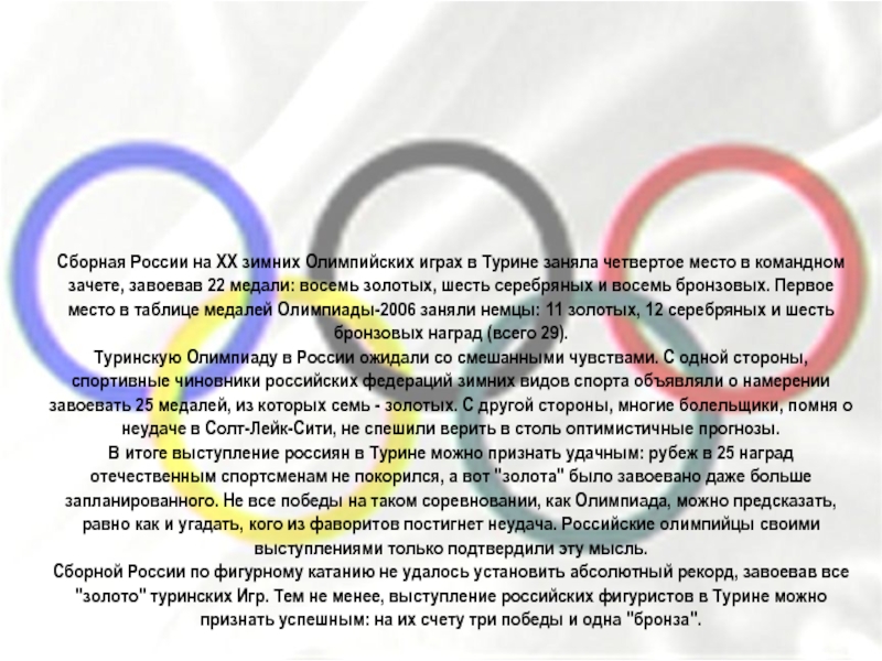 Слайд 24Сборная России на ХХ зимних Олимпийских играх в Турине заняла четвертое