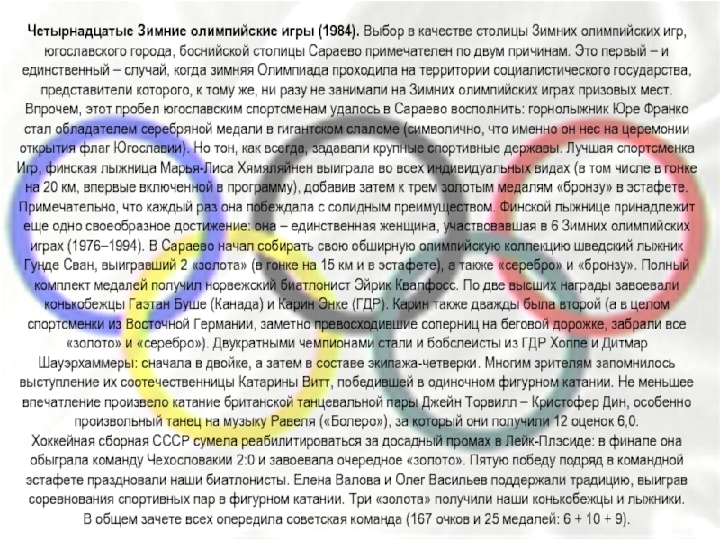 Слайд 18Четырнадцатые Зимние олимпийские игры (1984). Выбор в качестве столицы Зимних олимпийских