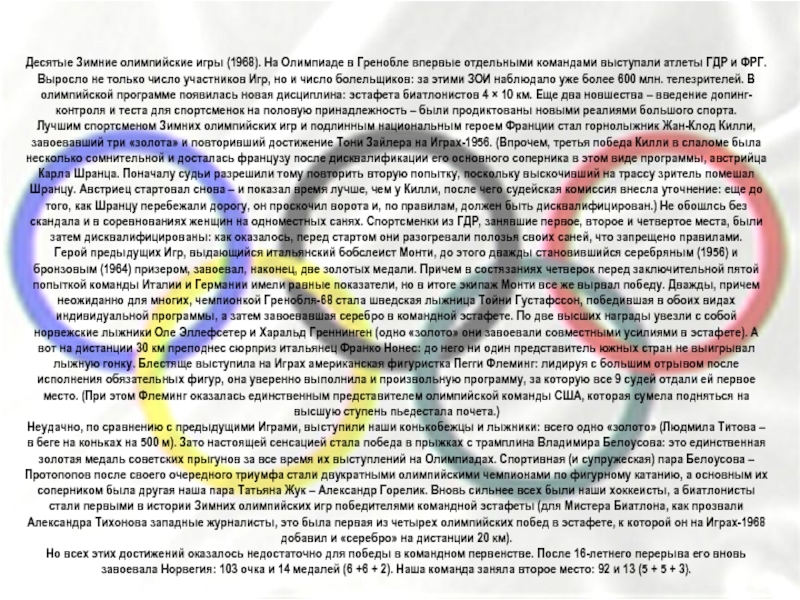 Слайд 14Десятые Зимние олимпийские игры (1968). На Олимпиаде в Гренобле впервые отдельными