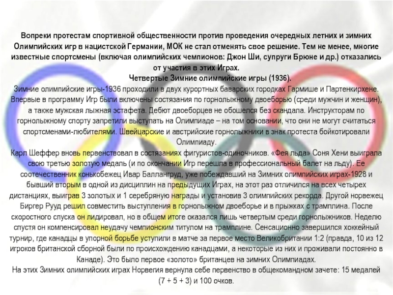 Слайд 9Вопреки протестам спортивной общественности против проведения очередных летних и зимних Олимпийских