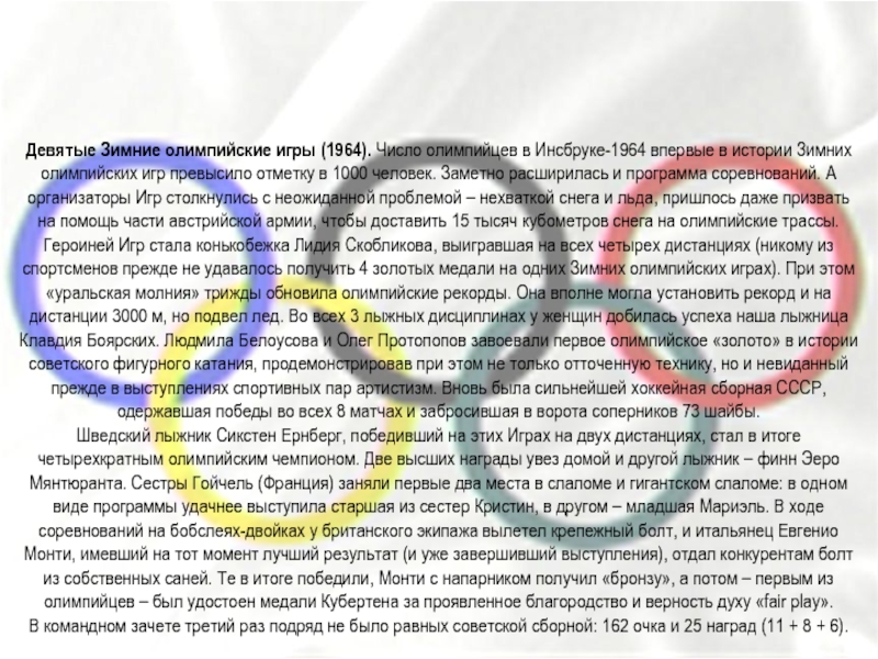 Слайд 13Девятые Зимние олимпийские игры (1964). Число олимпийцев в Инсбруке-1964 впервые в